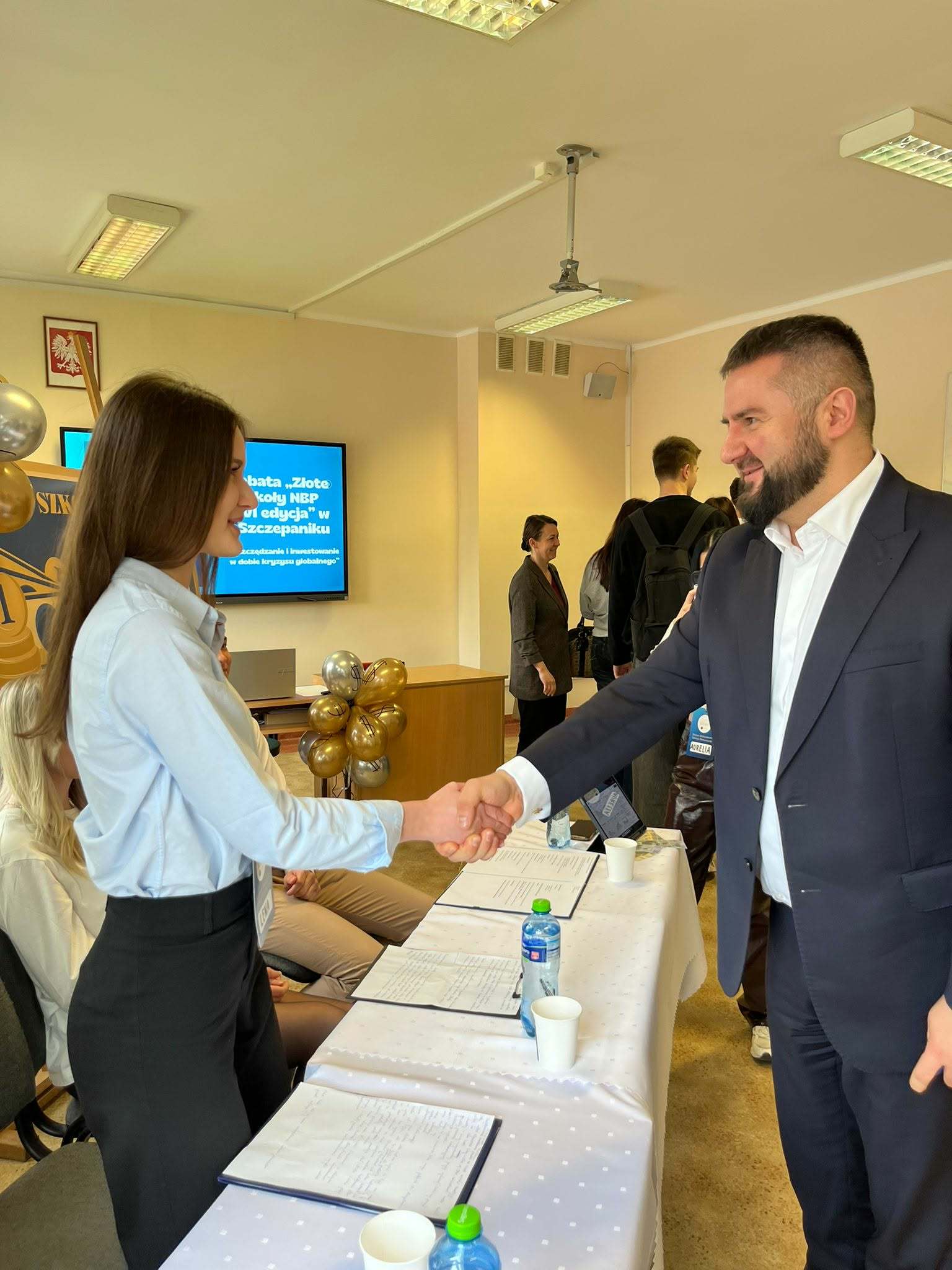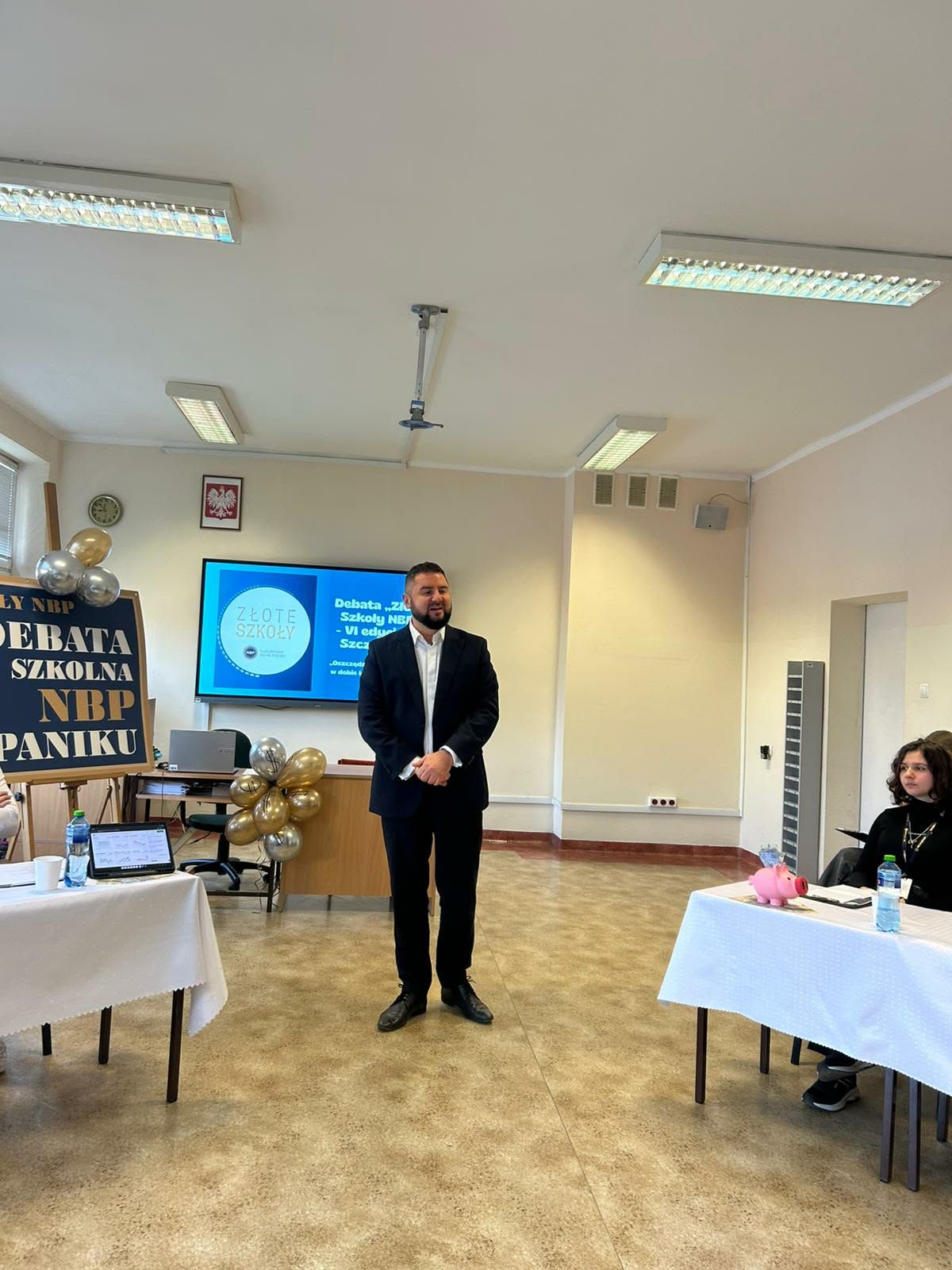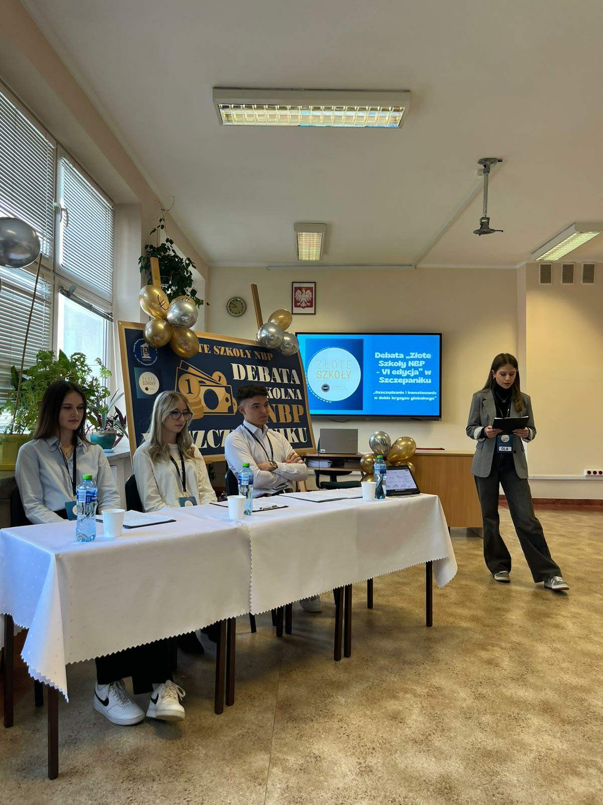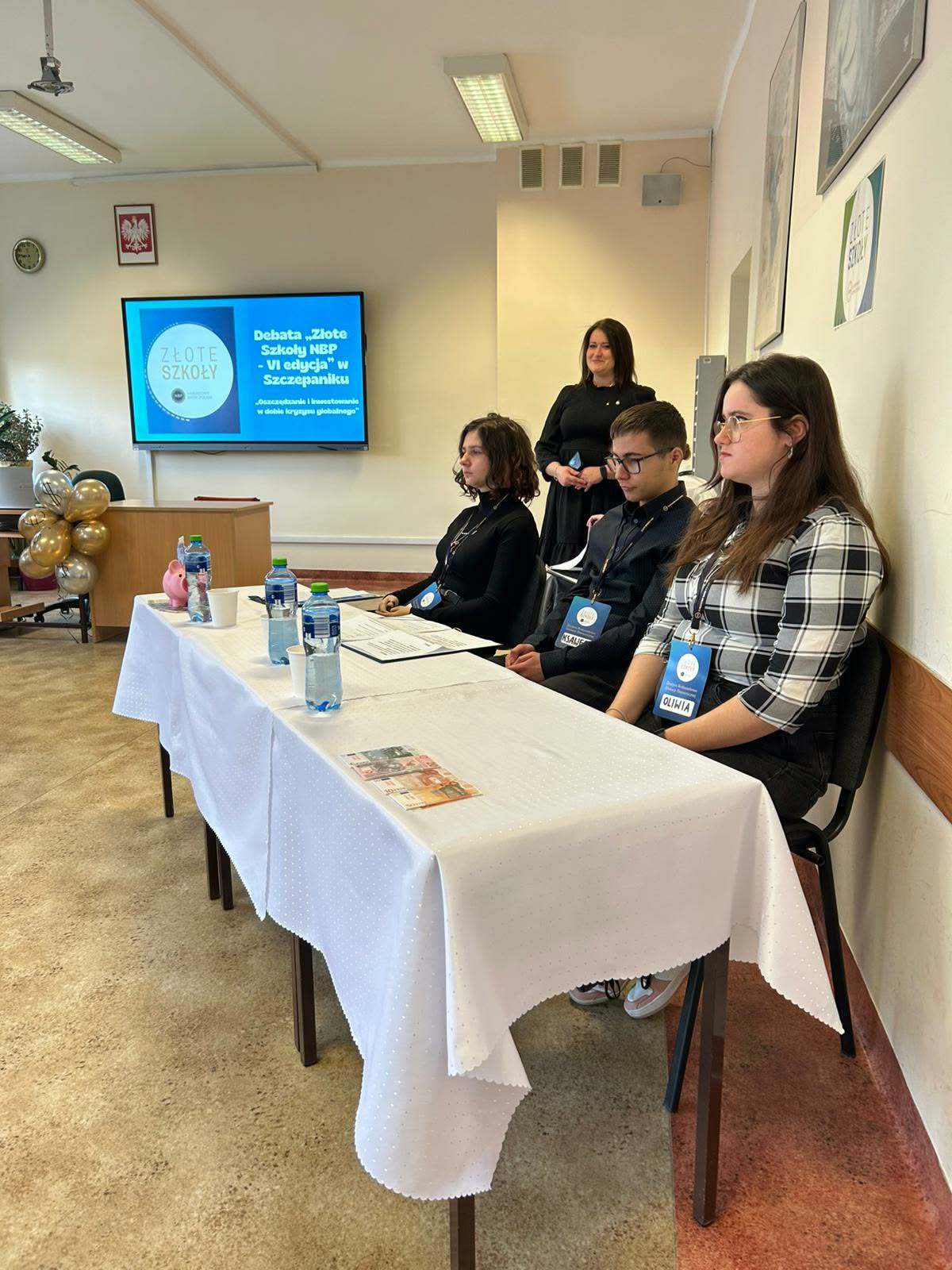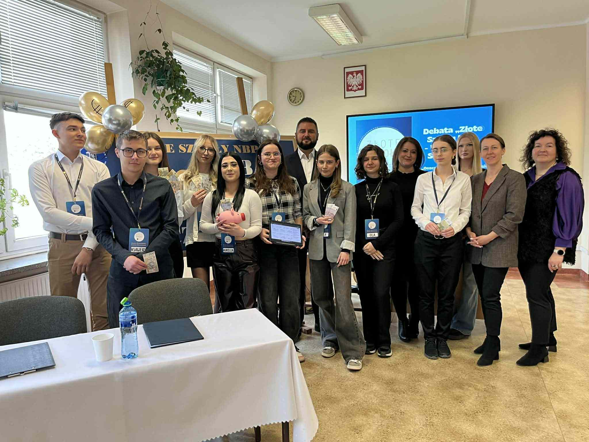 20 marca 2026 roku w naszej szkole odbyła się niezwykle ciekawa debata pt. „Oszczędzanie i inwestowanie w dobie kryzysu globalnego”, w ramach VI edycji konkursu Złote Szkoły NBP. W wydarzeniu wzięły udział dwie trzyosobowe drużyny, które zaprezentowały odmienne podejścia do zarządzania finansami w trudnych czasach.
